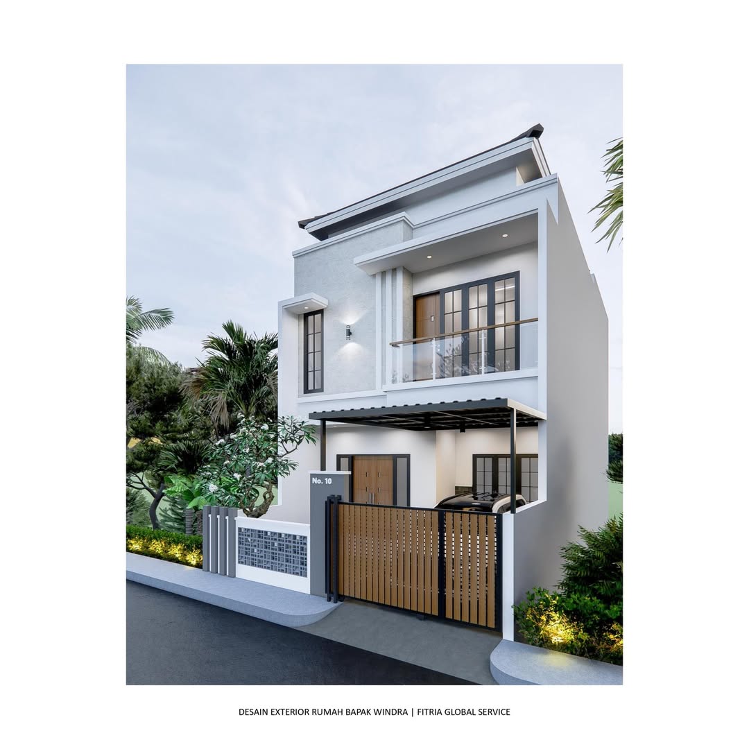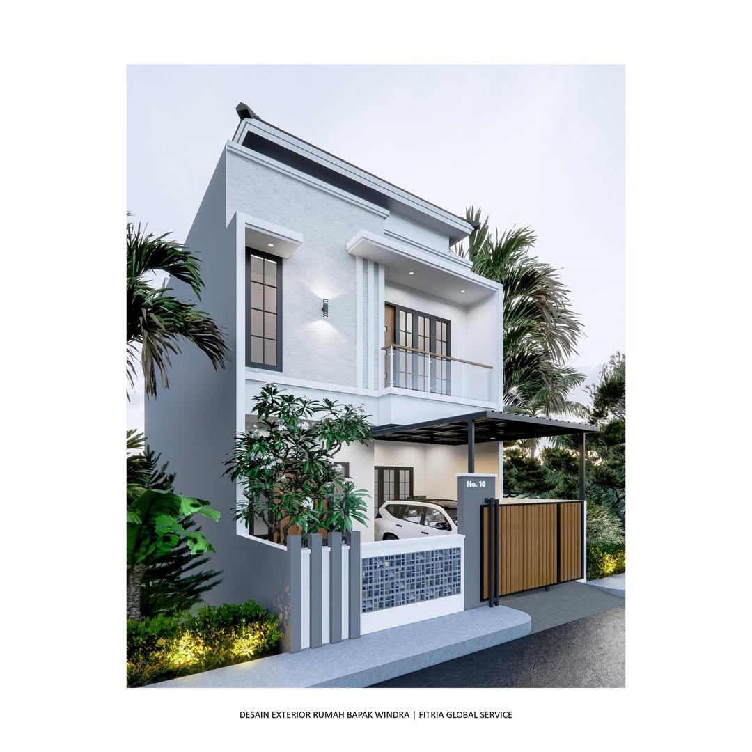 Memiliki rumah tinggal dua lantai dengan desain modern minimalis adalah pilihan tepat bagi mereka yang menginginkan hunian yang nyaman, fungsional, dan tetap estetis. Dengan kombinasi warna putih dan abu muda serta tambahan elemen roster pada tembok, rumah ini tampil elegan sekaligus memberikan nuansa yang segar.