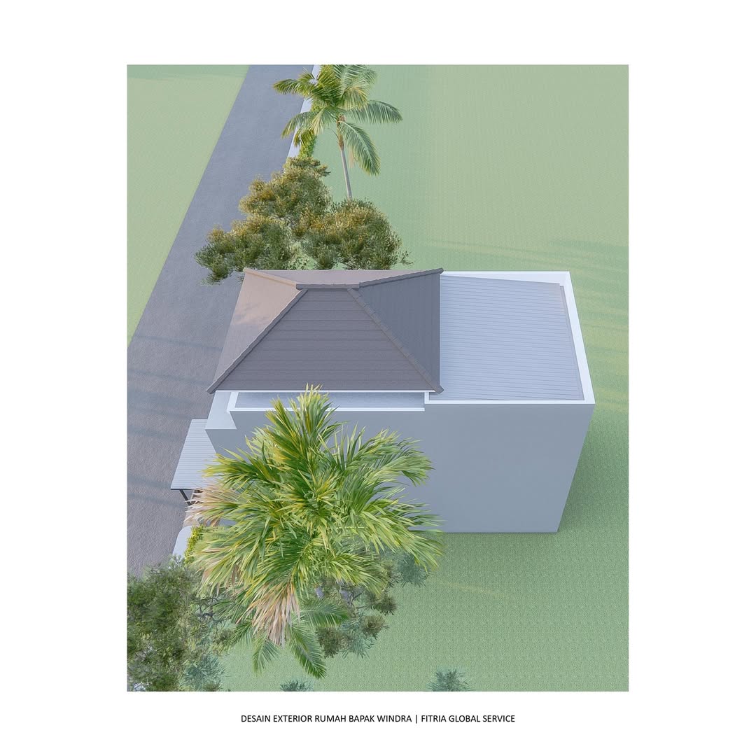 Rumah ini didominasi oleh warna putih yang memberikan kesan bersih dan luas, serta warna abu muda yang menambah kesan modern. Tembok bagian fasad menggunakan kombinasi roster, yang tidak hanya memperindah tampilan rumah tetapi juga membantu sirkulasi udara lebih baik.