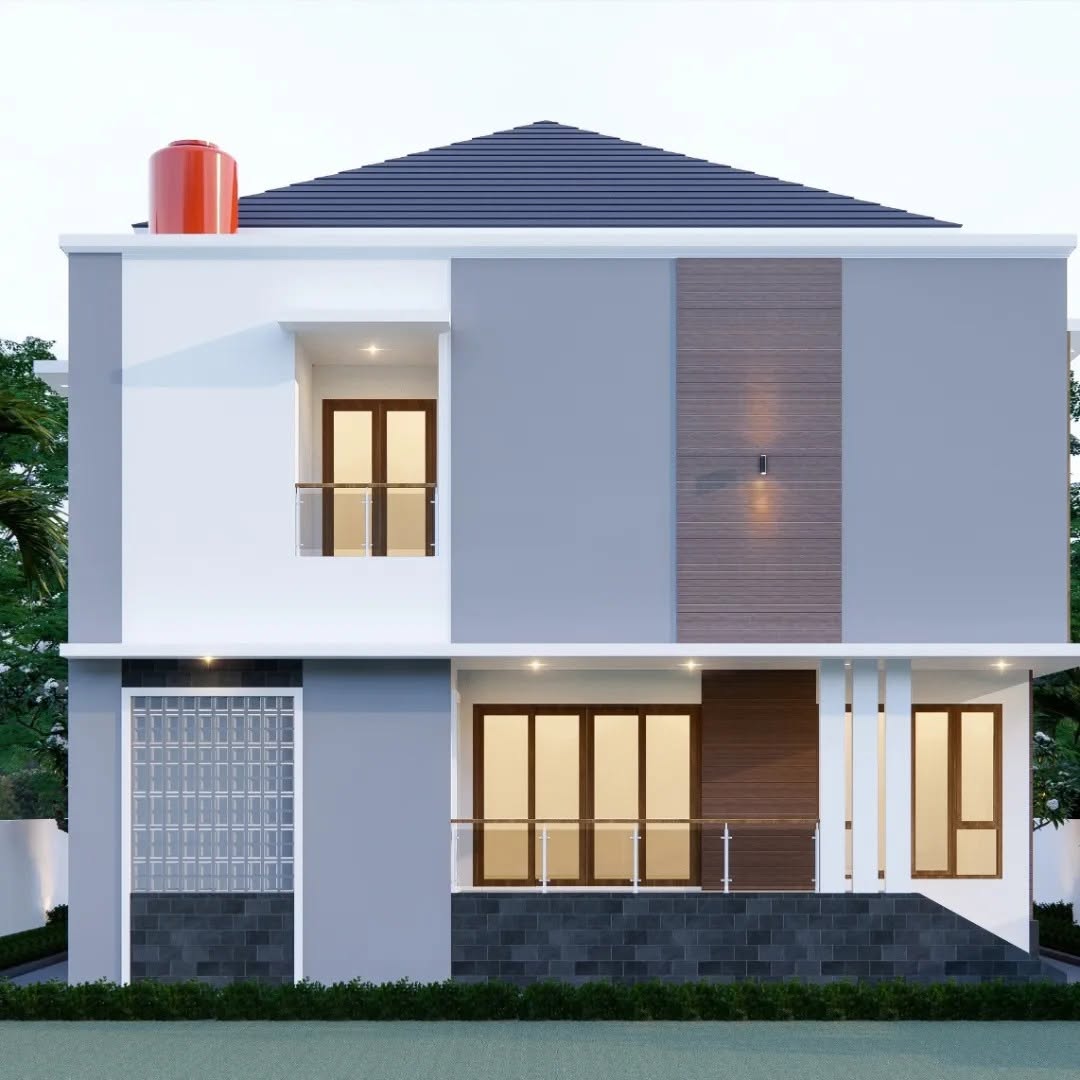 Rumah tinggal dua lantai dengan desain modern minimalis ini sangat cocok bagi keluarga yang menginginkan hunian yang nyaman, fungsional, dan tetap memiliki nilai estetika tinggi. Dengan kombinasi warna cat putih dan cream serta sentuhan batu alam di fasad lantai 1, rumah ini tampil elegan dan harmonis. Ditambah dengan akses tangga dari parkiran menuju pintu utama, rumah ini memberikan kesan eksklusif bagi penghuninya.